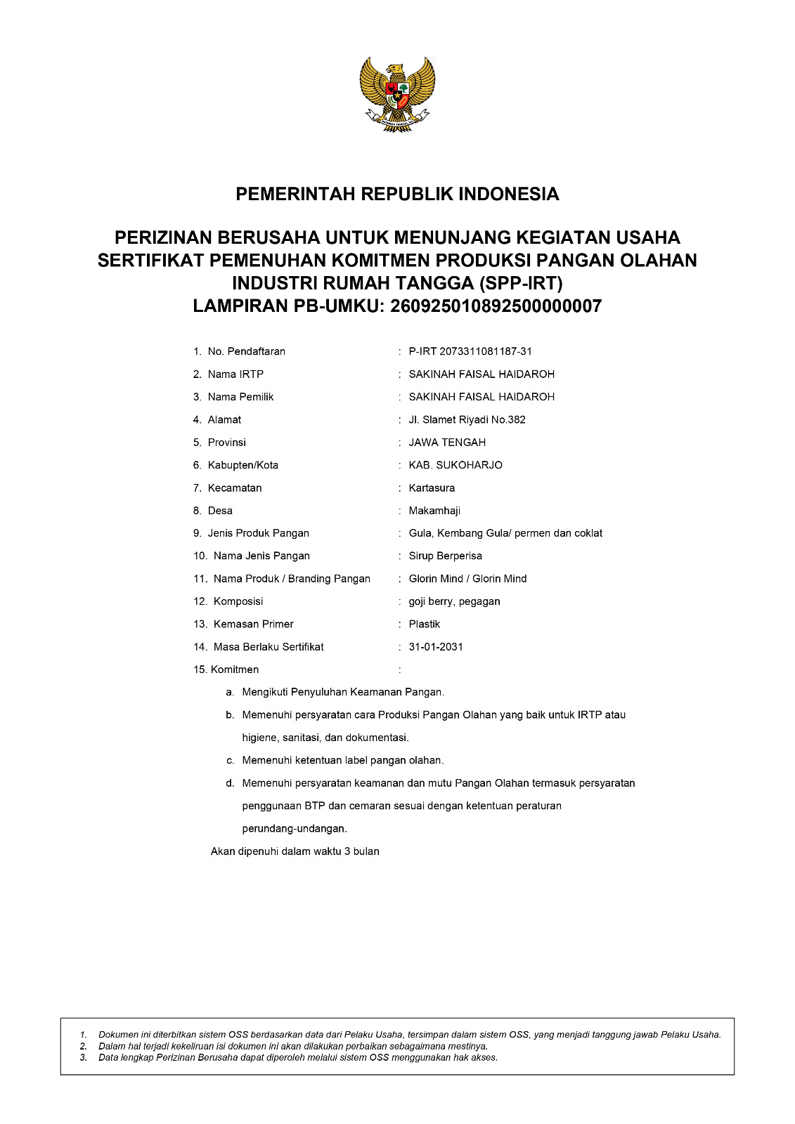 GLORIN MIND adalah Madu Herbal untuk Kesehatan Otak dan Mental (Herbal Honey for Brain and Mental Health) dan telah memperoleh Izin Edar nomor: P-IRT 2073311081187-31, yang mengandung 6 HERO INGREDIENTS, antara lain: Gotu Kola, COD Liver Oil, Ginkgo Biloba, Goji Berry, Golden Sea Cucumber, Honey, yang BERMANFAAT untuk: